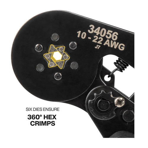 - Six precision dies create secure, 360-Degree hex crimps for durable and dependable connections