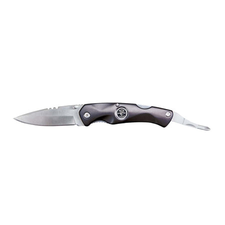 Klein's new tool isn't just a knife, it's a stripper and a driver too. This convenient pocket knife incorporates a No. 2 Phillips screwdriver, and a high quality stainless steel full-sized drop point blade with three wire stripping notches on the back of the blade. The Klein Tools® Electrician's Pocket Knife is three tools in one, saving multiple trips to the tool bag.