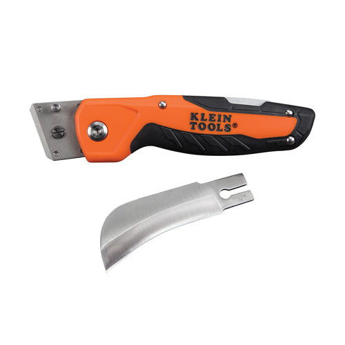 Cable skinning is very damaging to blades, so protect your personal pocket knife and stop wasting time sharpening the blade. Klein's new folding cable skinning utility knife has a replaceable hawkbill blade. After a long session of cable skinning, just replace the blade and get back to work.