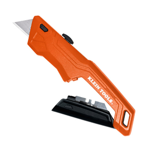 Klein Tools' Retractable Utility Knife is made of lightweight aluminum and designed to comfortably fit in your hand to make cutting tasks quick and easy. It features a fold out blade storage compartment in the handle that comes pre-loaded with five extra blades. It's bright orange color makes it easy to find in a tool box, tool bag or low light locations.