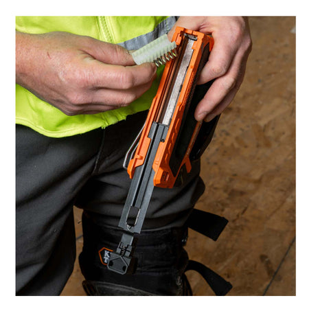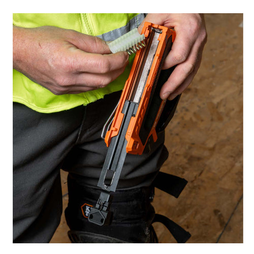 These heavy-duty staples are designed for safe and secure installation of NM (Romex®) cable gauges 14/3, 14/3G, and 12/3, and other wire up to 19/32-Inch (15 mm) in width. For exclusive use with Klein's Loose Cable Staplers (Cat. Nos. 450-01 and 450-100). These UL listed insulated staples are available in packs of 300.