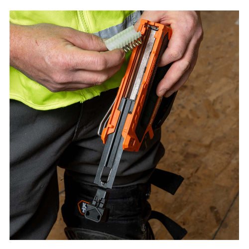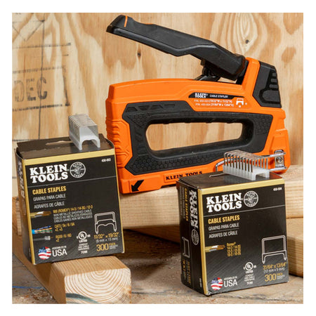 Klein Tools' Cable Stapler drives insulated staples for Romex® and data cables with one hand. It features a forward action handle for greater stability, which allows user to push the handle, rather than squeeze, delivering easy, consistent performance. Staples are released from the front of stapler, nearest to where the handle is pressed down. A cable guide along the entire bottom surface protects the cable during the stapling process. Use only with Klein staples (sold separately).