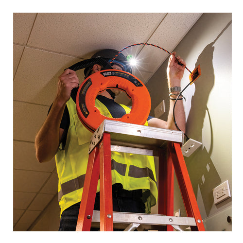 Our 75-Foot (22.9 m) High Flex Polyester Fish Tape is the perfect wire pulling solution where flexibility meets strength. The polyester material provides a highly flexible and lightweight tape compared to steel while the triple strand design delivers increased durability and strength compared to fiberglass. The low friction case and optimized feed angle create a smooth payout and easy retraction. The bright orange strand woven into the triple strand improves visibility for easier locating of the tape.