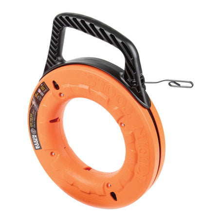 The Klein Tools 65-foot (19.81 m) steel fish tape features innovative permanent laser-etched markings. The tape is marked every foot in descending order allowing you to more accurately measure conduit runs and know how much tape is left to pay out. Raised finger grips on the case help transfer 100-percent of the winding power from your hands and fingers.