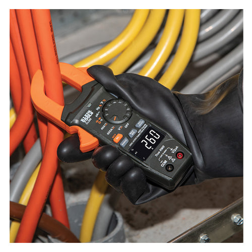 Klein Tools CL390 is an automatically ranging true root mean squared (TRMS) digital clamp meter. It measures AC/DC current and NCVT via the clamp, AC/DC voltage, DC microamps, resistance, continuity, frequency, capacitance, and diodes via test leads, and temperature via a thermocouple probe. It features a high visibility, reverse contrast LCD display that optimizes view ability both in dark or bright ambient lighting.