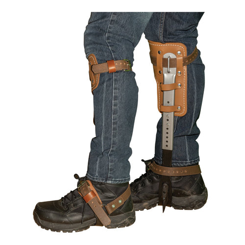 Klein's Pole Climber set includes the pads, steel sleeves, leg irons, 1-1/2-Inch gaffs, split rings and nylon calf and ankle straps. The secure sleeve and leg iron connections are adjustable in 1/4-Inch (6 mm) increments. Contoured leg irons help position gaffs securely and comfortably. The replaceable gaffs firmly attach to the leg iron with a center pin and two TORX® screws. High-grade leather climber pads are cushioned for maximum comfort. Klein Tools has been providing occupational protective equipment to linemen since the first telegraph poles were strung. Klein components should not be interchanged with components made from other manufacturers because Klein cannot guarantee that those components are properly designed or are free of defects in materials or workmanship.
