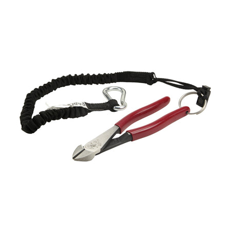 These high-leverage diagonal cutters feature a split ring for tethering pliers while working at height. All of the features of Klein pliers plus the added safety of a tether ring. The rivet is closer to the cutting edge for greater cutting power while the angled head design allows for easy access in confined spaces. Short jaws and beveled cutting edges allow close cutting of wire. Protect yourself, your equipment and others on the job site with Klein's heavy duty diagonal cutting pliers with tether ring.