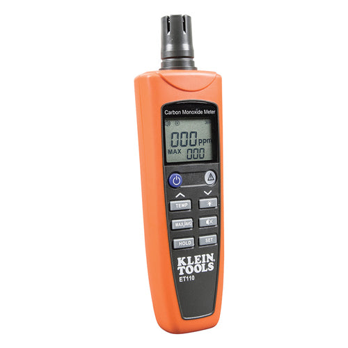 The ET110 CO Detector is an easy-to-use meter that detects and measures concentration levels of carbon monoxide (ppm) and temperature (Fahrenheit/Celsius), making it the perfect choice for HVAC professionals. Features backlit LCD screen, warning indicator light, audible and visual alarms and multiple function buttons. Includes carrying pouch and 4 x AAA batteries.