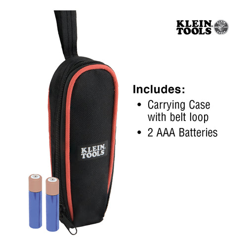 The Klein Tools IR07 is a dual IR (infrared) thermometer and probe thermometer. This rugged pocket thermometer measures temperature from -40 to 572-Degrees Fahrenheit (-40 to 400-Degrees Celsius) for both IR and probe measurements. The IR thermometer has a Distance-to-Spot ratio of 8:1 and the target laser can also be used as a laser pointer. The Probe accurately measures air, liquid and surface temps and has a convenient hook for hands free indoor measurements. The IR07 quickly calculates differential temperature (T1-T2) and has a backlit LCD for easy viewing in low light.