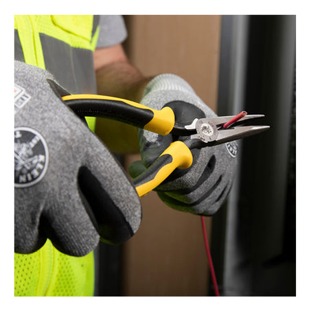 Klein's Long-Nose Side-Cutting Pliers offer induction hardened knives to ensure long term durability and easy cutting. The slim head gets into confined spaces while the extended handles provide extra reach. The long nose is great for grabbing and looping wire.
