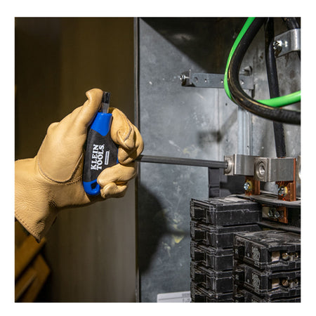 Klein Tools Hex Key Set offers soft touch grips for maximum control and comfort. T-Handle design delivers maximum power. Sizes marked on individual T-Handles. Blade-through handle design for high torque applications.