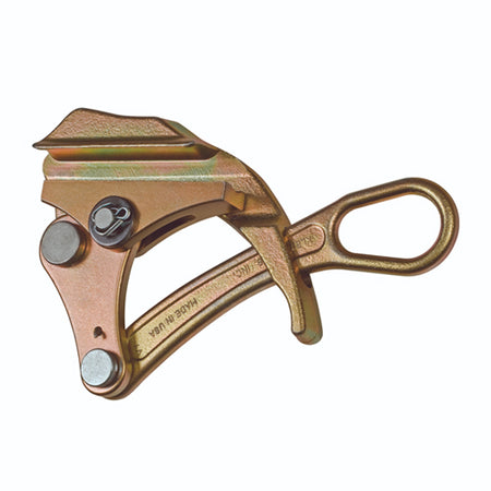 Lightweight, compact grips pull an exceptionally wide range of cable sizes and types. Designed with a round serrated jaw to firmly grip insulated cables and conductors. A hot latch closed automatically to guard against grip accidently disengaging from wire. A large opening in the handle accommodates a wide variety of hooks on hoists, winches and tackle blocks.