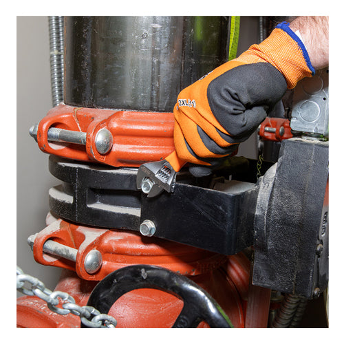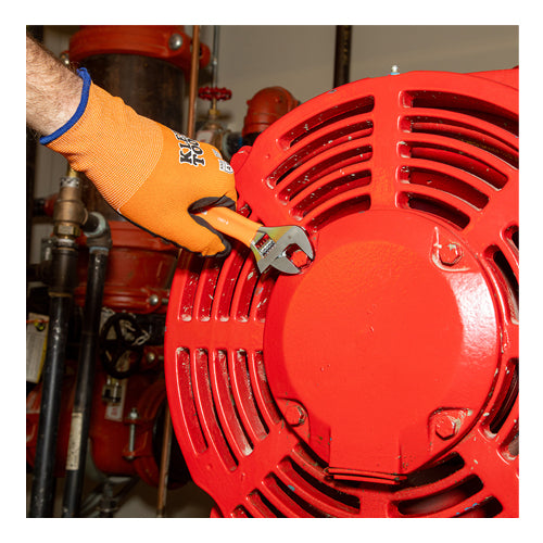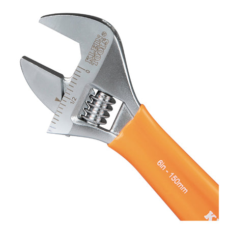 Klein Tools' 6-Inch (150 mm) Extra Capacity Adjustable Wrench is made of forged, heat-treated alloy steel for maximum strength and light weight. Jaws are precision-machined to ensure smooth operation. Contoured, plastic-dipped handles make them easy to grip and comfortable to use.