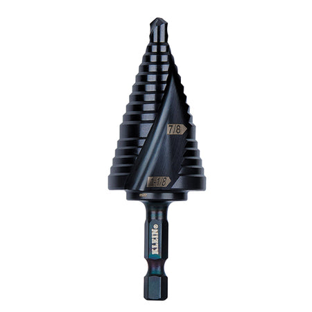 Klein Tools QRST11, Step Drill Bit, Quick Release, Double Spiral Flute, 7/8 to 1-1/8-Inch