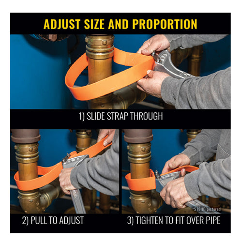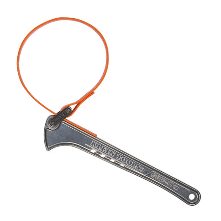 From Klein Tools, the Grip-It™ Strap Wrench is completely adjustable to work in the tightest quarters. Solidly constructed of urethane-covered, high-strength belting attached to a lightweight I-beam handle. The cam-action design permits uniform, high-torque application. The Grip-It™ Strap Wrench is made to resist scratching, damaging or deforming polished pipe and fittings, plastic pipe and fittings, oil and water filters, glass pipe, PVC conduit, and polished shafts. Also works on alternator belts, flywheels, and propeller assemblies. Grip-It™ Strap Wrenches are also available in 6-Inch and 18-Inch lengths (Cat. Nos. S6HB, S18HB).
