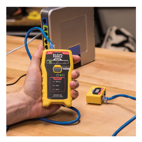- Cable tester (Cat. No. VDV526-100) with single button testing of terminated voice and data cables