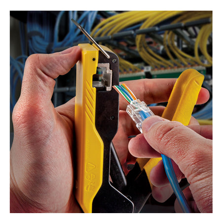 - Klein exclusive Pass-Thru™ Connectors provide fast, reliable connector installations for data applications