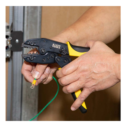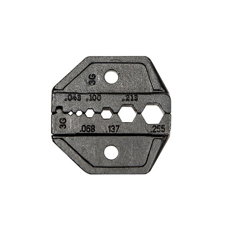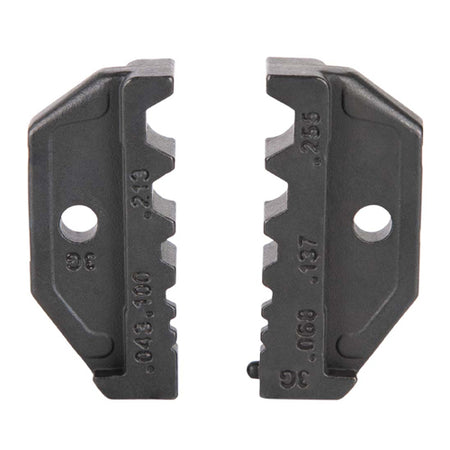 Die set only. For Klein Tools Cat. No. VDV200-010 (sold separately). Induction hardened high-carbon steel for durability and long life. Precise nest dimensions ensure accurate terminations that meet or exceed common standards. Crimp die for use with crimp connectors. Not for use with compression connectors.