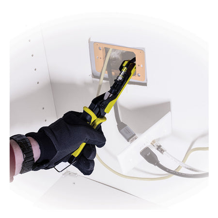 The Extended Reach Coax Crimper is designed with an elongated neck specifically for work in confined spaces and for short cable installations. This versatile tool easily crimps compression F, BNC and RCA connectors with an adjustable universal plunger and on-tool markings. The open-channel design makes it easy to insert all connector head styles. Klein Tools also offers Universal Sleeve connectors that are 5x faster to install--they fit all diameter variations within a cable series and even fit difficult to work with multi-shield and plenum cables.