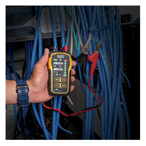 Use Klein Tools Digital Tone Generator for wire identification, wire tracing and wire pair identification. When used with the Digital Tracing Probe (Cat. No. VDV500-223; sold separately), you can trace and locate cables on an active network and wire map to check Pin-to-Pin connections with shield detection and features angled bed-of-nails (ABN) clips to securely attach to wires. Use the RJ45 port to easily test RJ45, RJ11, and RJ12 data cables.