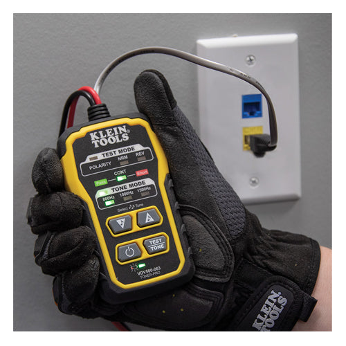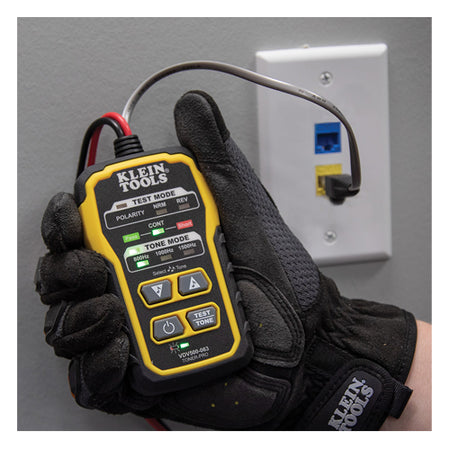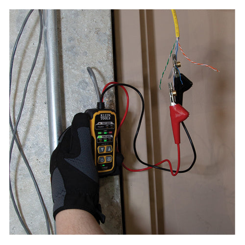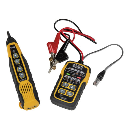 This kit includes the tools necessary to tone and trace wires in common wiring systems. This premium tone generator has Angled Bed of Nails (ABN) clips that securely grip the cable. Tone Generator emits five distinct tones. An RJ11 plug easily connects to telephone or RJ45 data jacks for toning. The toner, also checks continuity and polarity that are indicated by clearly labeled LEDs. The probe traces with the tones signal. The adjustable-volume speaker amplifies the tone. The 3.5 mm jack allows for headphones (sold separately) to be attached in noisy environments. The probe has a tool-less non-metallic durable replaceable tip. The probe enables testing in distribution blocks without disturbing other services.