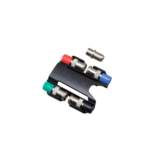 - Test remotes and F-adapter snap into the remote holder and clip onto the tester for easy access and storage