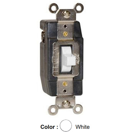 Leviton 1081-W, Low Voltage Momentary Contact Single Pole Double Throw Toggle Switch, Center OFF, Industrial Grade, 3A 24VAC/DC, Self-Grounding, Back & Side Wired, White