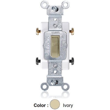 Leviton 1102-CI, Framed Double Pole Toggle Switch, Commercial Specification Grade, 15A 120/277V AC, Side Wire, Non-Grounding, Ivory