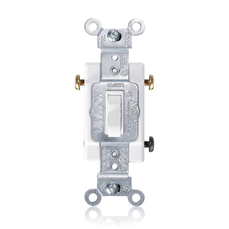 Leviton 1103-CW, Framed 3-Way Toggle Switch, Commercial Specification Grade, 15A 120/277V AC, Side Wire, Non-Grounding, White, 2 Packs