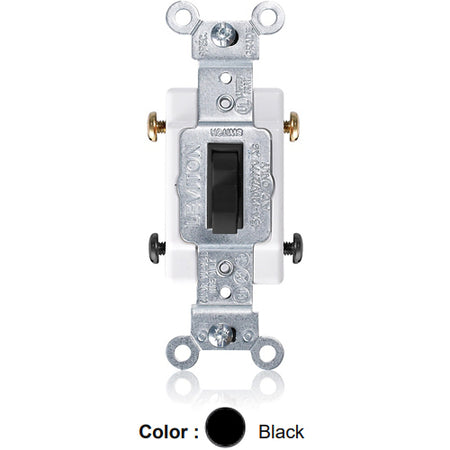 Leviton 1104-CE, Framed 4-Way Toggle Switch, Commercial Specification Grade, 15A 120/277V AC, Side Wire, Non-Grounding, Black