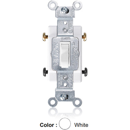 Leviton 1104-CW, Framed 4-Way Toggle Switch, Commercial Specification Grade, 15A 120/277V AC, Side Wire, Non-Grounding, White