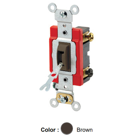 Leviton 1222-2L, Tamper-Resistant (Key) Locking Double Pole AC Quiet Toggle Switch, Extra Heavy-Duty Industrial Specification Grade, 20A 120/277V AC, Self Grounding, Back & Side Wired, Brown