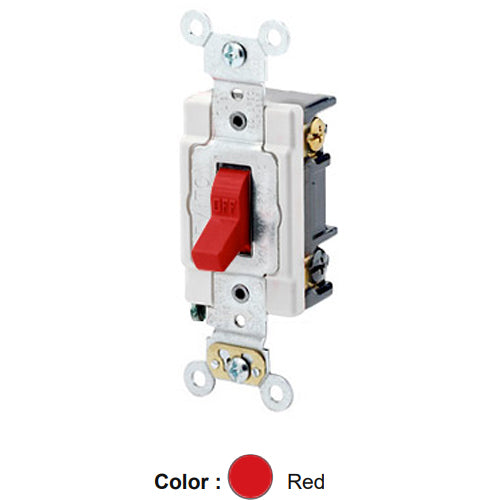 Leviton 1223-SR, Standard 3-Way AC Quiet Toggle Switch, Heavy-Duty Industrial Specification Grade, 20A 120/277V AC, Self Grounding, Back & Side Wired, Red