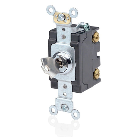Leviton 1224-2KL, Key Locking 4-Way AC Quiet Toggle Switch, Extra Heavy-Duty Industrial Specification Grade, 20A 120/277V AC, Self Grounding, Back & Side Wired, Chrome