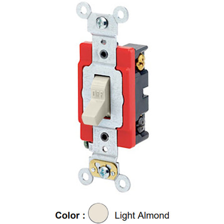 Leviton 1224-2T, Standard 4-Way AC Quiet Toggle Switch, Extra Heavy-Duty Industrial Specification Grade, 20A 120/277V AC, Self Grounding, Back & Side Wired, Light Almond