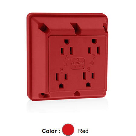 Leviton 1254-R, 4-in-1 Quadruplex Receptacle, Heavy-Duty Industrial Specification Grade, 15A 125V, NEMA 5-15R, 2-Pole, 3-Wire, Side Wire Only, Red