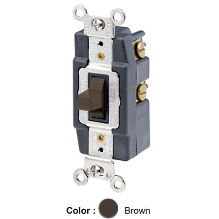 Leviton 1262, Double-Pole Double Throw Toggle AC Quiet Switch, Momentary Contact, Center OFF, Extra Heavy Duty Industrial Specification Grade, Back & Side Wired, Self-Grounding, 30A 120/277V AC, Brown