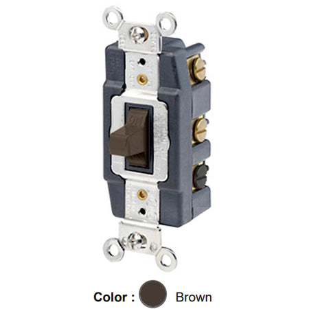 Leviton 1286, Double-Pole Double Throw Toggle AC Quiet Switch, Maintained Contact, Center OFF, Extra Heavy Duty Industrial Specification Grade, 20A 120/277V AC, Back & Side Wired, Self-Grounding, Brown