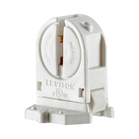 Leviton 13654-SWP, Standard Fluorescent Lampholder, Miniature Base, T5 Bi-Pin, Low Profile, Snap-In or Slide-ON, Lamp-Lock, With Panel Locator Post, Quickwire 18 AWG Solid or Str. Tinned, White, 2 Packs