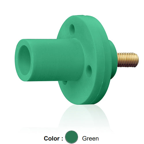 Leviton 15R21-1UG, 15 Series Single Pole Cam-Type Male Panel Mount Receptacle, Industrial Grade, 150 Amp Max, 600 VAC/DC Max, 0.75'' Threaded Stud Termination, 90-Degree, #8 - #2 AWG, Green