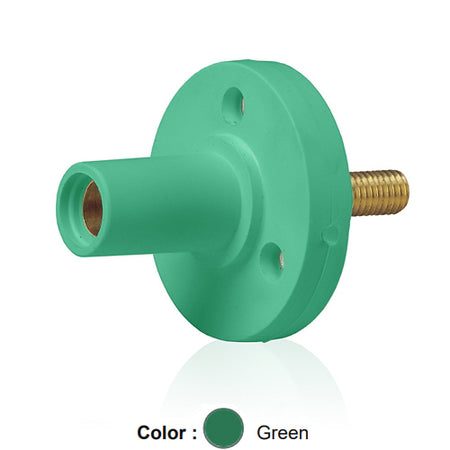 Leviton 15R22-1UG, 15 Series Single Pole Cam-Type Female Panel Mount Receptacle, Industrial Grade, 150 Amp Max, 600 VAC/DC Max, 0.75'' Threaded Stud Termination, 90-Degree, #8 - #2 AWG, Green