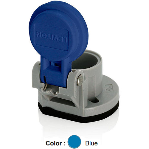 Leviton 15S31-UB, 15 Series Cam-Type Male/Female Panel Mount Receptacle Enclosure with Automatic Closing Lid, Thermoplastic Housing and Cover, Stainless Steel Torsion Spring, Blue