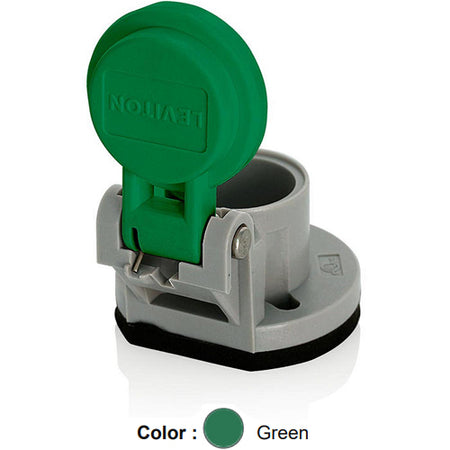 Leviton 15S31-UG, 15 Series Cam-Type Male/Female Panel Mount Receptacle Enclosure with Automatic Closing Lid, Thermoplastic Housing and Cover, Stainless Steel Torsion Spring, Green