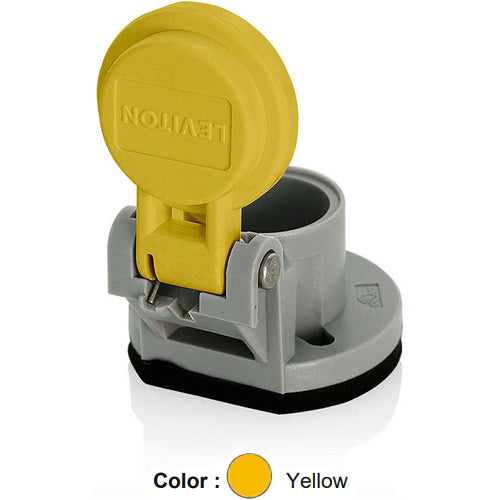 Leviton 15S31-UY, 15 Series Cam-Type Male/Female Panel Mount Receptacle Enclosure with Automatic Closing Lid, Thermoplastic Housing and Cover, Stainless Steel Torsion Spring, Yellow