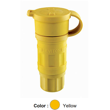 Leviton 15W49, Wetguard Watertight Straight Blade Connector, Industrial Grade, 15A 250V, NEMA 6-15R, 2-Pole, 3-Wire, Grounding, Yellow