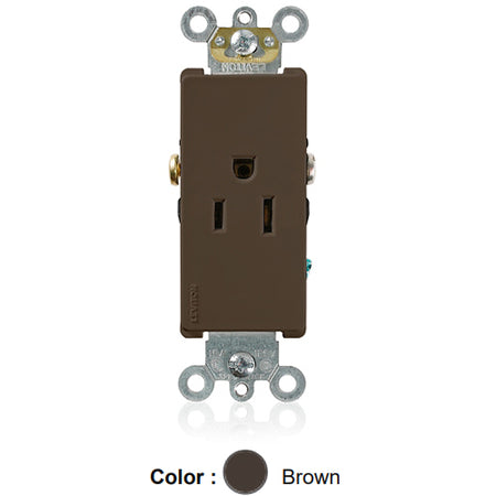 Leviton 16251, Decora Plus Straight Blade Single Receptacle, Commercial Specification Grade, Smooth Face, 15A 125V, NEMA 5-15R, 2-Pole, 3-Wire, Back and Side Wire, Brown