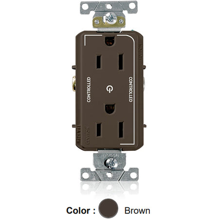 Leviton 16252-2P, Decora Plus Straight Blade Duplex Receptacle, Heavy-Duty Industrial Specification Grade, Two Outlets Marked ''Controlled'', Smooth Face, 15A 125V, NEMA 5-15R, 2-Pole, 3-Wire, Back and Side Wire, Brown