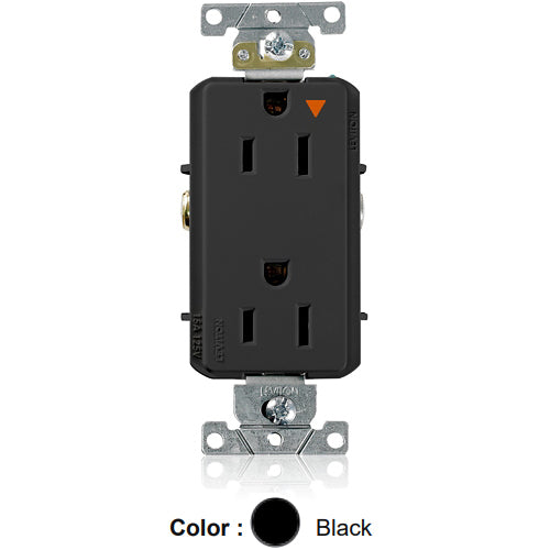 Leviton 16262-EIG, Decora Plus Straight Blade Duplex Receptacle, Heavy-Duty Industrial Specification Grade, Smooth Face, Isolated Ground, 15A 125V, NEMA 5-15R, 2-Pole, 3-Wire, Back and Side Wire, Black
