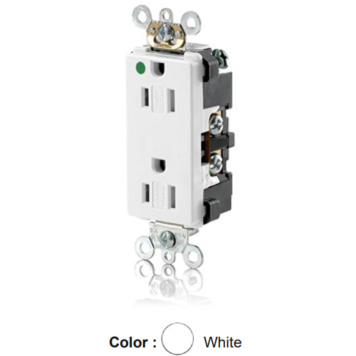 Leviton 16262-SGW, Decora Plus Straight Blade Duplex Receptacle, Extra Heavy-Duty Hospital Grade, Tamper-Resistant, Smooth Face, 15A 125V, NEMA 5-15R, 2-Pole, 3-Wire, Back and Side Wire, White
