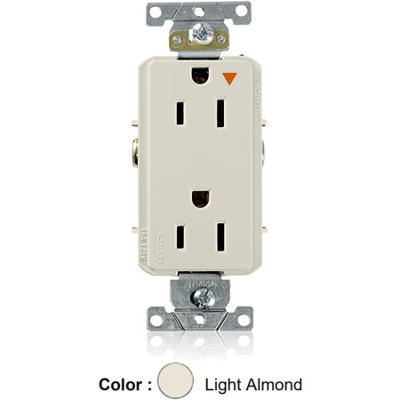 Leviton 16262-TIG, Decora Plus Straight Blade Duplex Receptacle, Heavy-Duty Industrial Specification Grade, Smooth Face, Isolated Ground, 15A 125V, NEMA 5-15R, 2-Pole, 3-Wire, Back and Side Wire, Light Almond